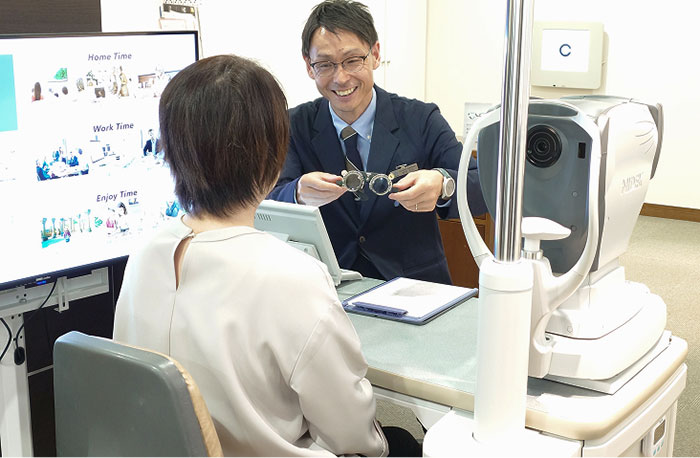 ご要望に応じて、Focusmade(フォーカスメイド)のご案内もいたします。お客様の見えづらさの原因を確認し、新しいメガネでの見え方を体験しながら、最適な一本をお作りします。