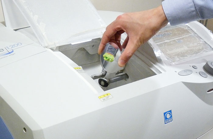 ステップ4でお選びしたレンズを1枚ずつオーダーし、届いたレンズをシミズメガネでフレームにお入れして、メガネを仕上げます。