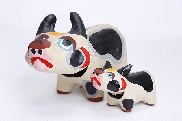 小さい丑は初期の作。後の作品と違い角が尖っている